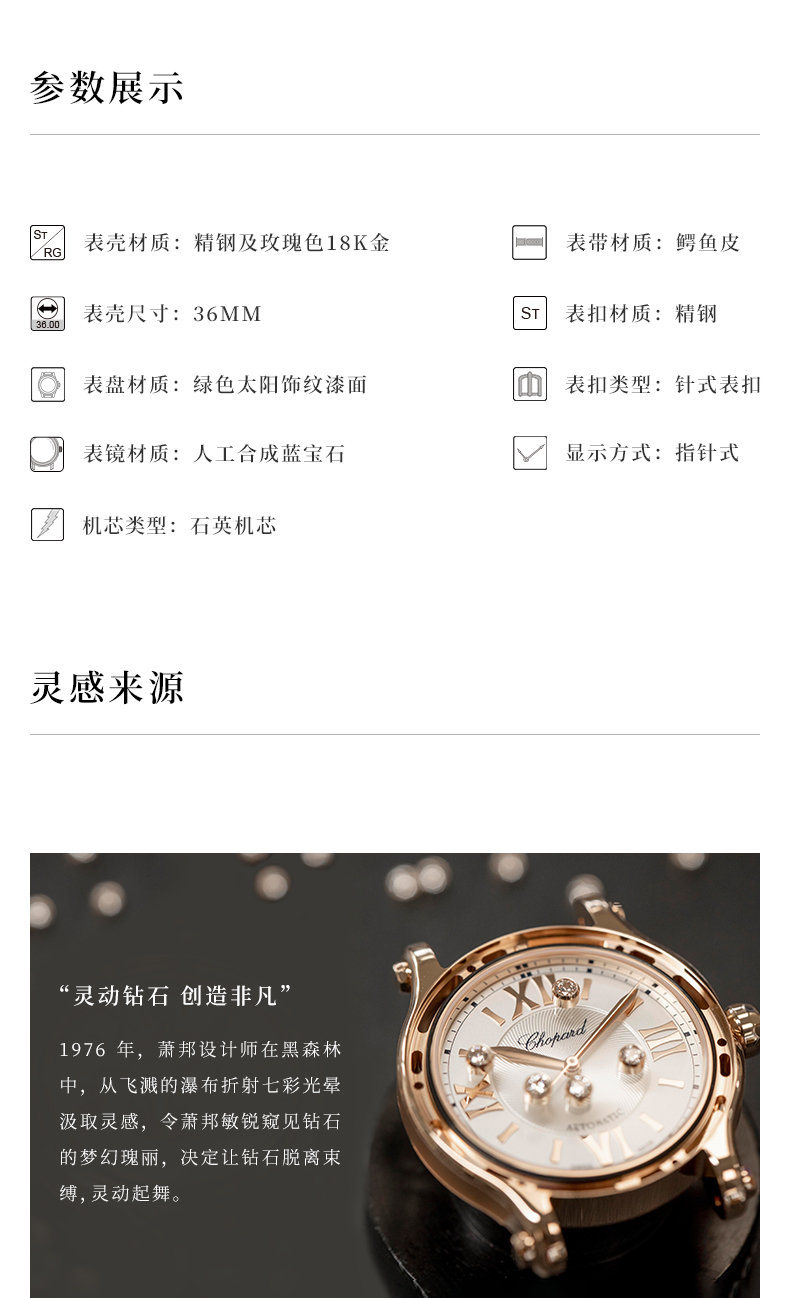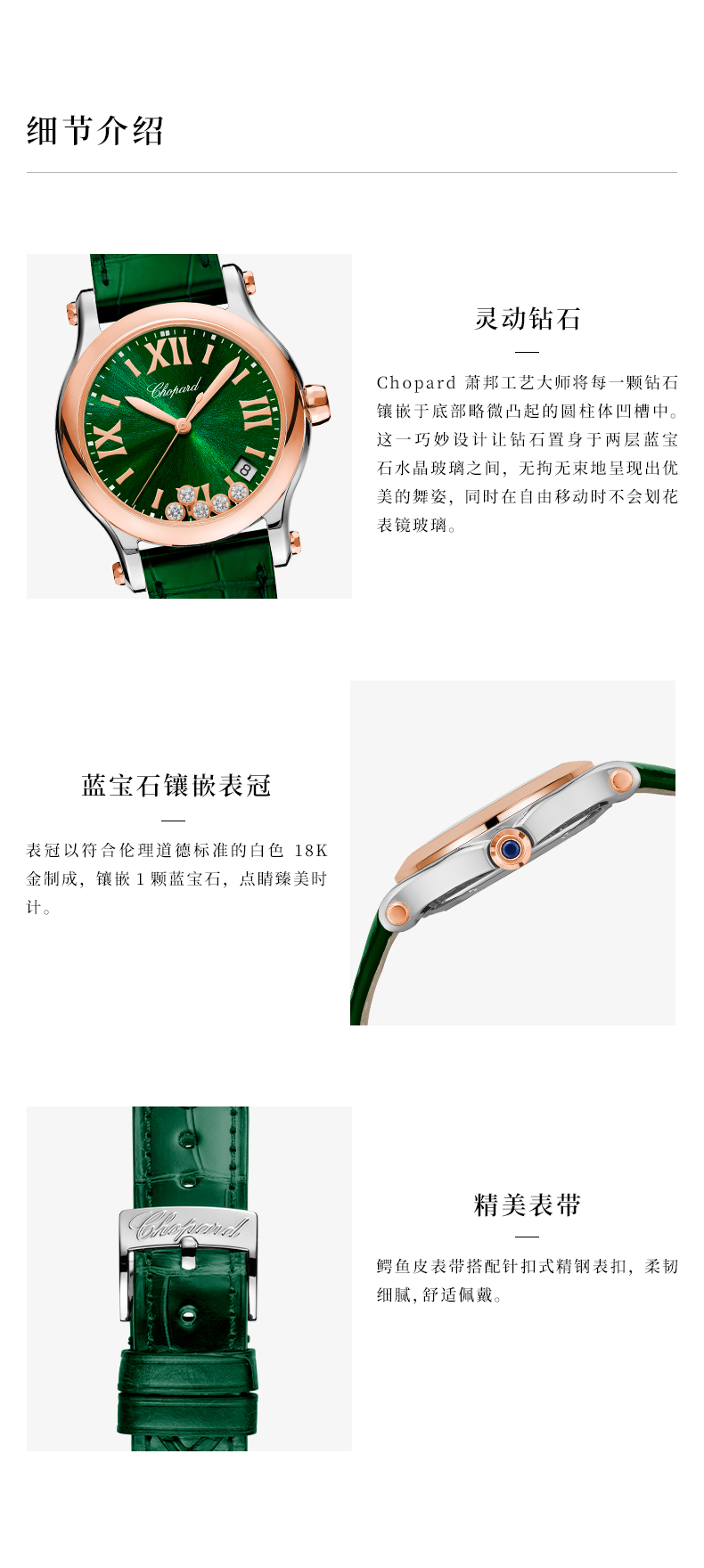 Chopard萧邦Happy Sport 5钻绿色时空彩盘璀璨钻石石英女士手表