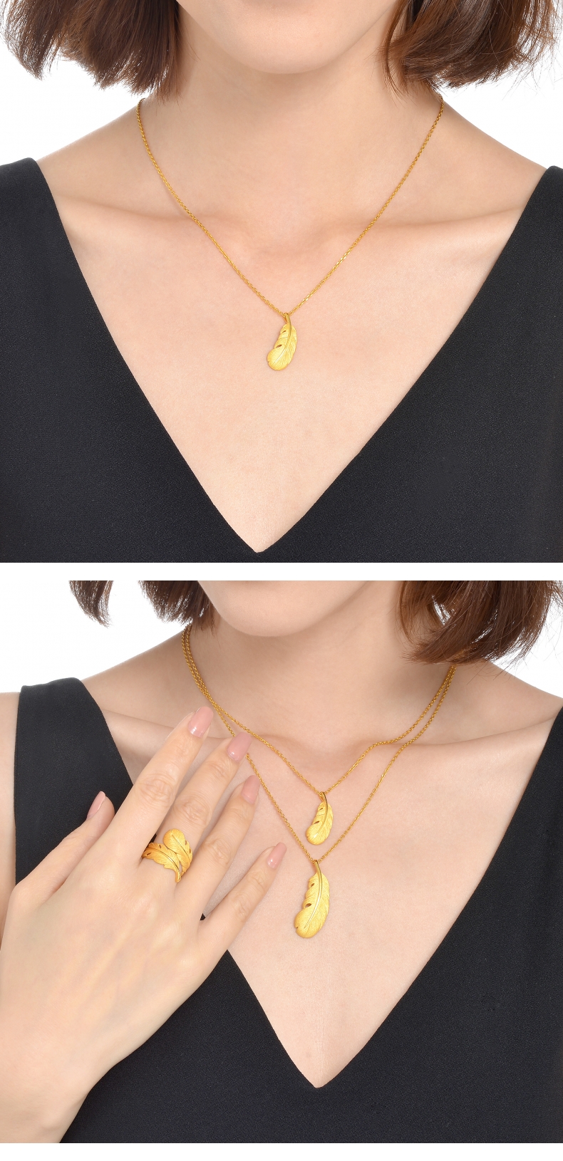 圣诞礼物周生生黄金羽毛吊坠爱情密语黄金挂坠不含项链女