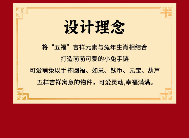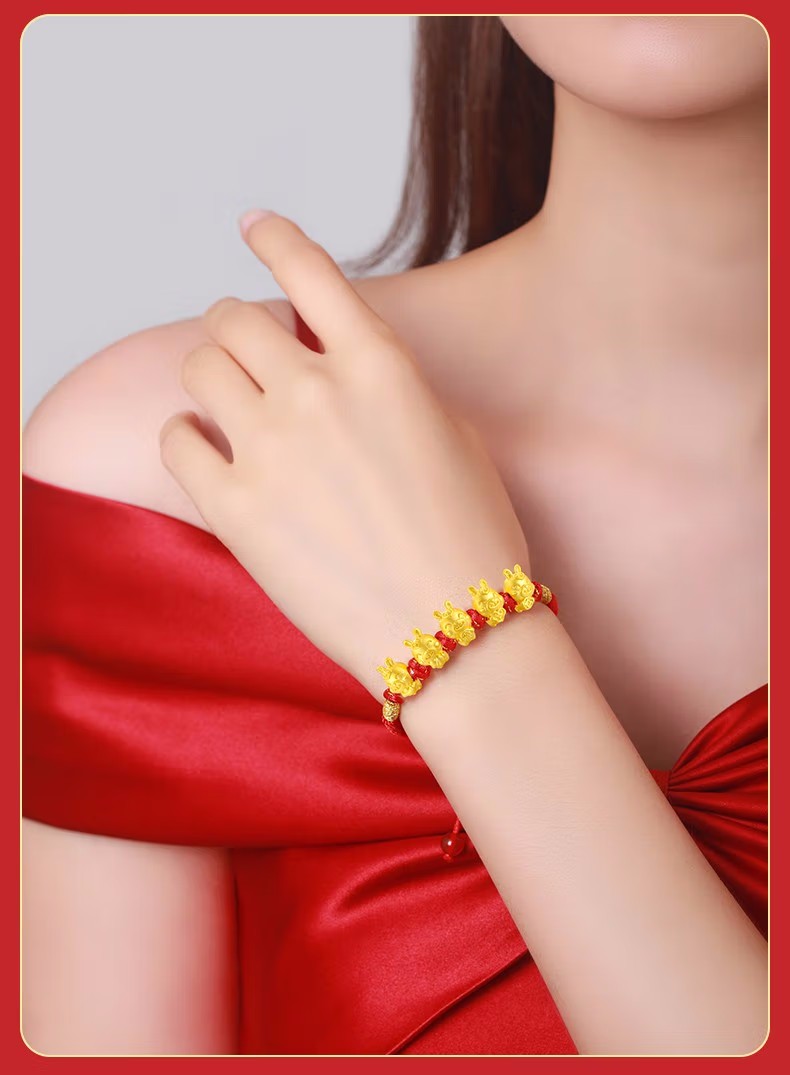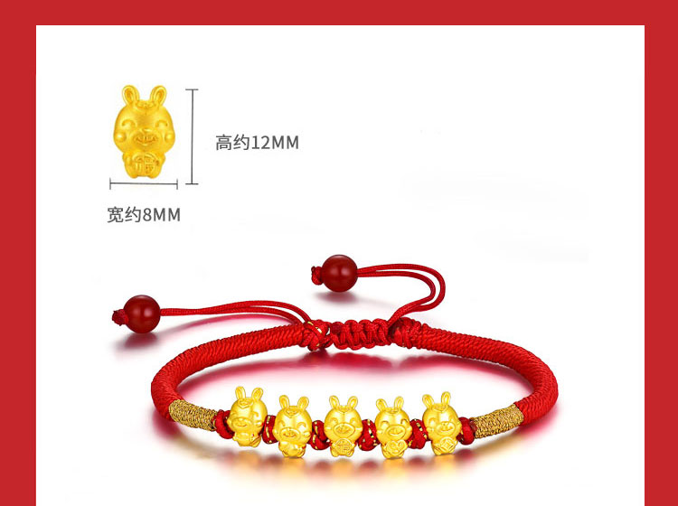 送女友老婆本命年兔年五福兔黄金手链生肖兔男女红绳